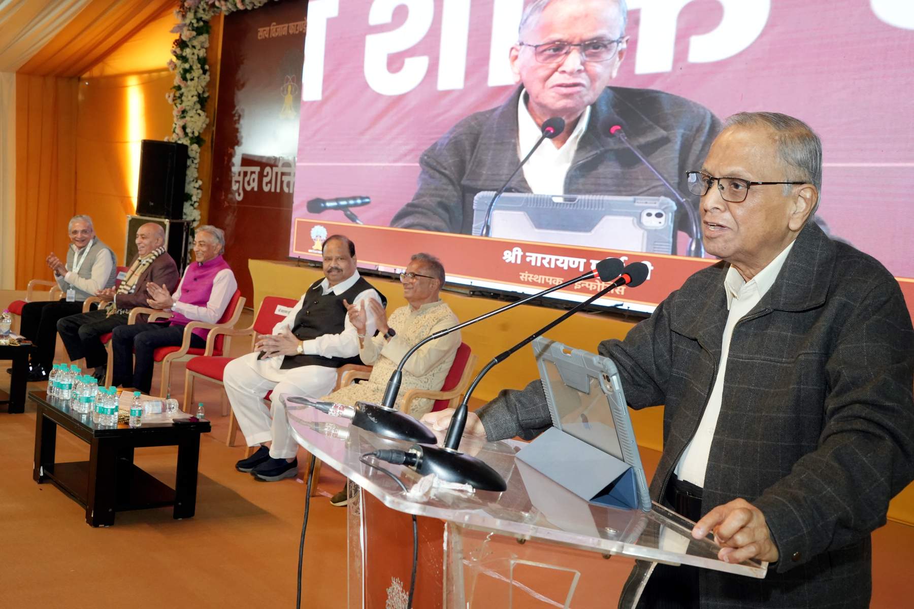 श्री नारायण मूर्ति ने इस मौके पर कहा कि समाज में स्थायी परिवर्तन बाहरी व्यवस्था से नहीं, बल्कि व्यक्ति के आत्म-अनुशासन और मूल्यों से आता है। उन्होंने सुख शक्ति धाम को आत्म-जागरण का केंद्र बताते हुए कहा कि यह स्थान लोगों को भीतर की स्पष्टता, नैतिकता और सामाजिक उत्तरदायित्व की ओर प्रेरित करेगा। सुख और शक्ति शब्द ही हमारी गहरी मानवीय आकांक्षाओं का सार है। ये कोई खरीदी जाने वाली वस्तुएं नहीं है अपितु ऐसे फल है जिन्हें हमें अपने दैनिक जीवन में स्वयं ही विकसित करना होता है। सबको सुख एवं शक्ति पर आधारित एक उज्जवल भविष्य का निर्माण करना चाहिए।
