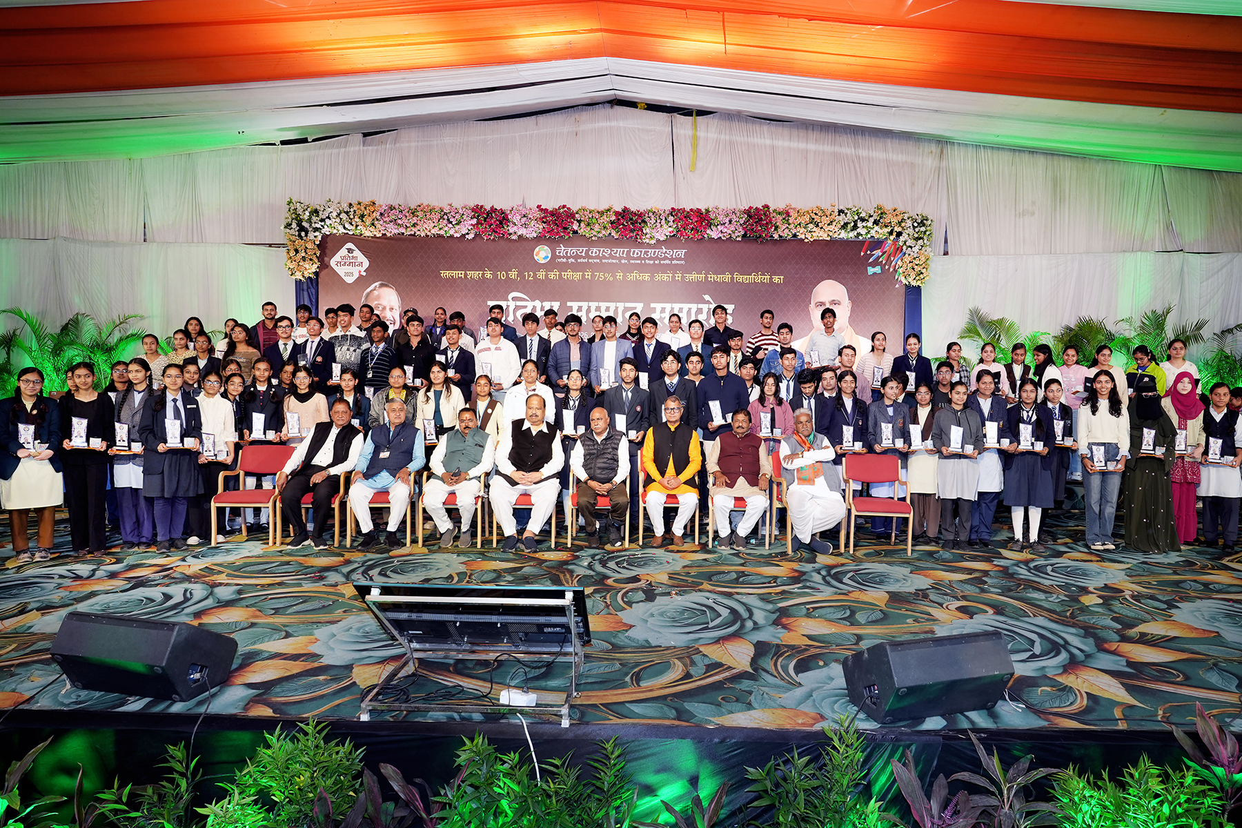 रतलाम 10 जनवरी। चेतन्य काश्यप फाउंडेशन द्वारा आयोजित प्रतिभा सम्मान समारोह में प्रदेश भाजपा अध्यक्ष हेमंत खंडेलवाल के मुख्य आतिथ्य में 2500 से अधिक मेधावी विद्यार्थियों को सम्मानित किया गया। बरबड़ स्थित विधायक सभागृह पर आयोजित समारोह की अध्यक्षता कैबिनेट मंत्री, फाउंडेशन अध्यक्ष चेतन्य काश्यप ने की। विशेष अतिथि भाजपा जिलाध्यक्ष प्रदीप उपाध्याय रहे। इस अवसर पर संभाग प्रभारी सुरेश आर्य, जिला प्रभारी प्रदीप पांडेय, उज्जैन विधायक अनिल जैन कालूहेड़ा, ग्रामीण विधायक मथुरालाल डामर, आयोजन समिति सलाहकार पूर्व महापौर शैलेंद्र डागा, निर्मल लुनिया मंचासीन रहे।